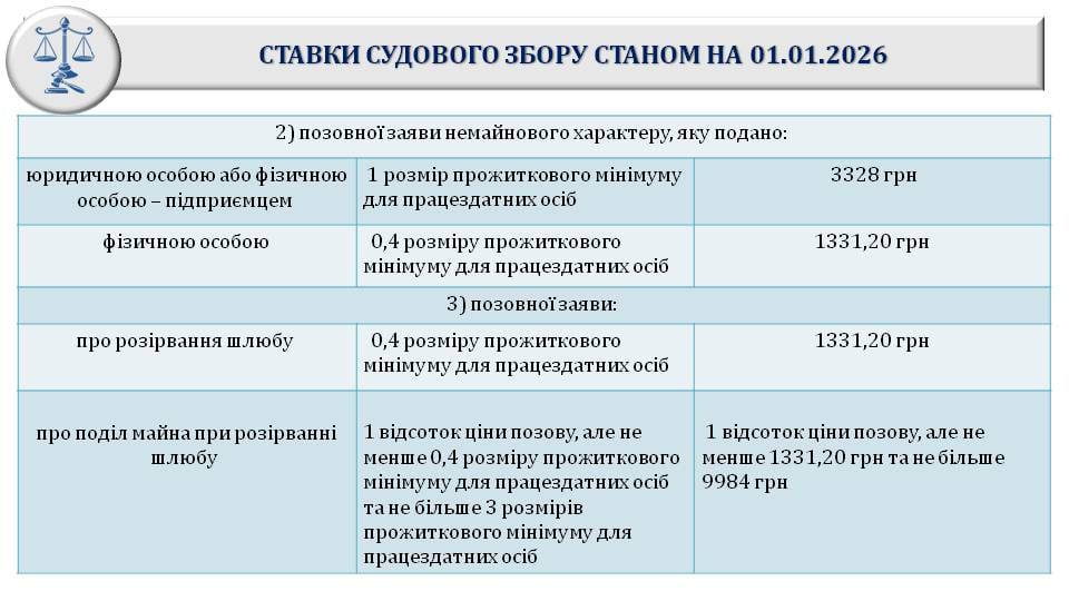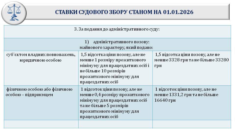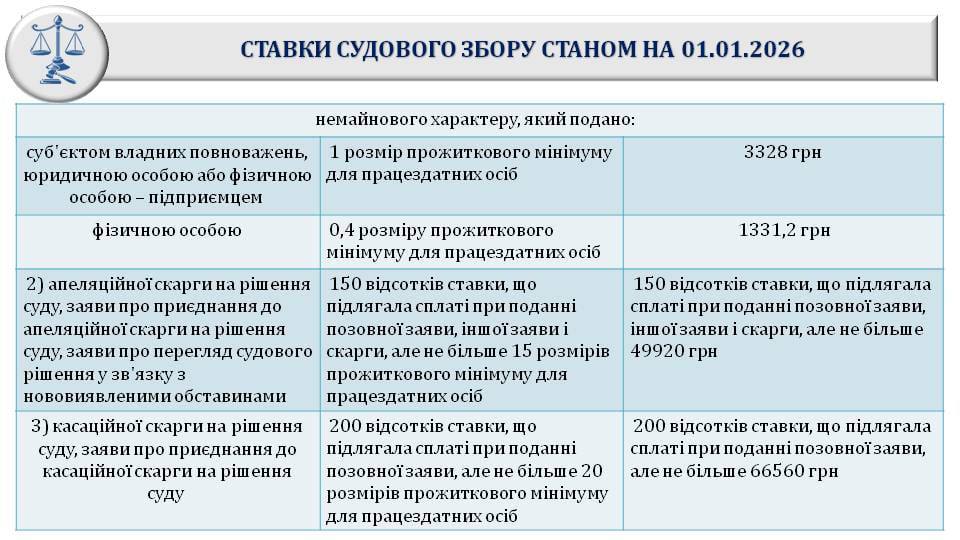 З 1 січня 2026 року змінюється розмір судового збору.